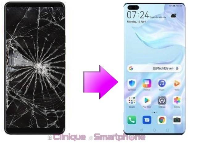 Réparation écran cassé, vitre fissurée Huawei P40 à LYON, à PARIS ou par correspondance.