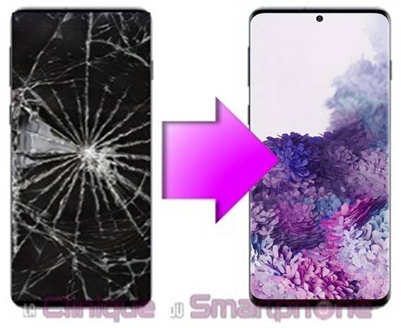 Réparation écran cassé, vitre fissurée Samsung Galaxy S20 Plus à LYON, à PARIS ou par correspondance.