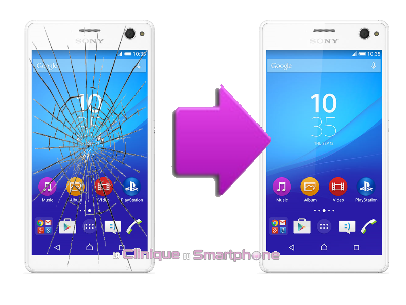 - Le changement du bloc écran complet tactile + LCD pour Sony xperia C4 en remplacement de l'écran cassé.