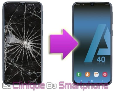 La Clinique du Smartphone Lyon vous propose un forfait de réparation d'écran cassé Samsung Galaxy A40,